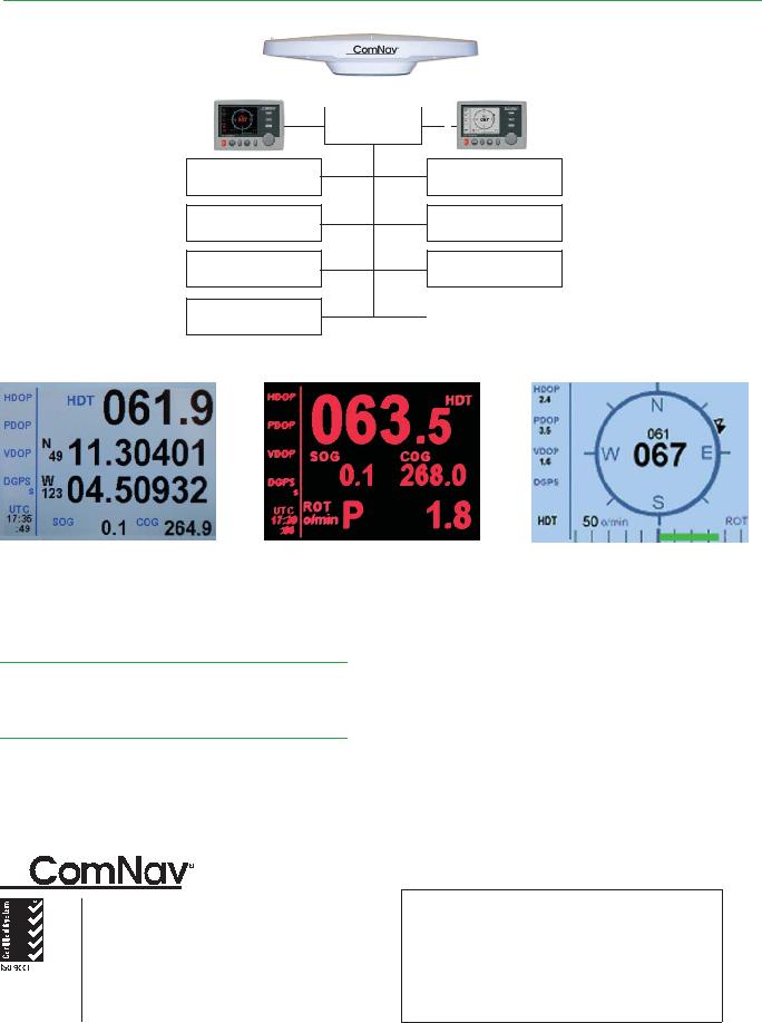 •Modes: Display pages include Compass Rose, Heading, Position, Advanced Heading, GPS Monitor, GPS Satellites Status & Auto Setup